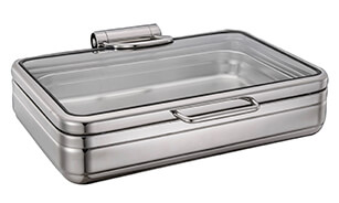Condensation management: The lids have a special condensation management system to allow the return of water back to the chafing dish that runs around the perimeter of the glass lid.
