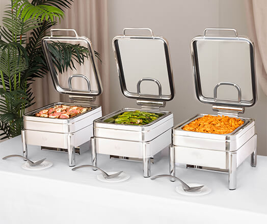 All of our Magnifico Chafing Dish Collections offer flexibility with base options for both canned fuel and induction heating, allowing you to cater to diverse culinary needs with ease and precision.