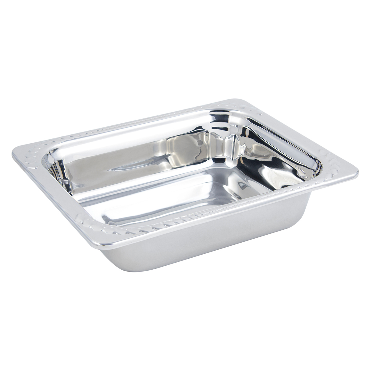 Constructed of heavy gauge, high-polished stainless steel, these pieces can travel straight from the oven to table to steam table. Customize any Hot Solutions item by choosing a stylish patterned border or decorative handle.