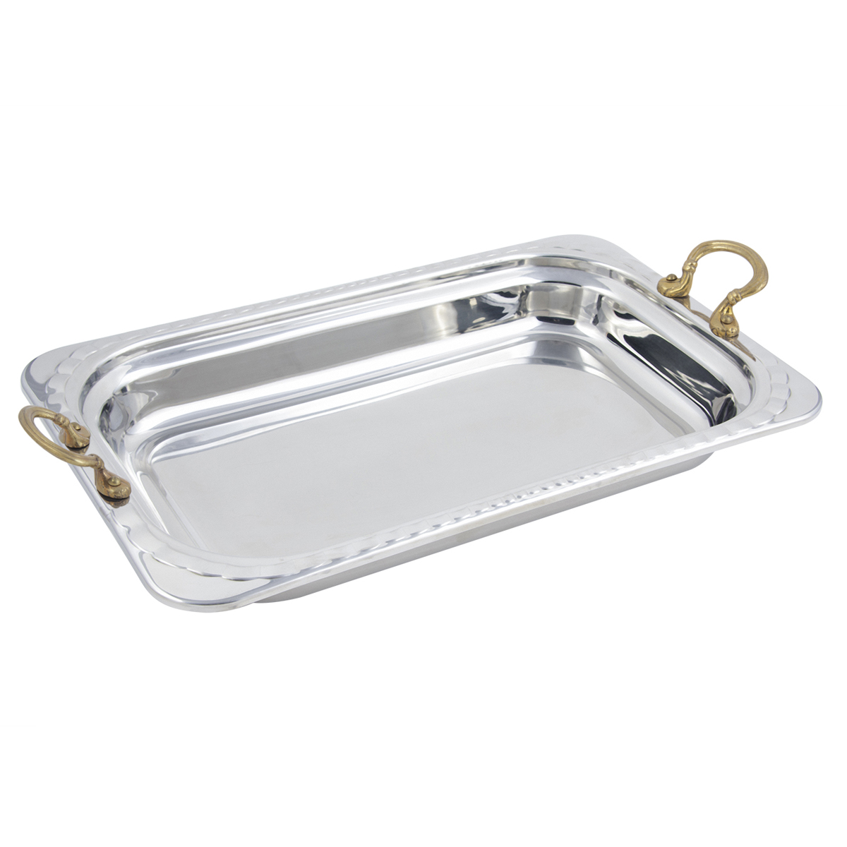 Constructed of heavy gauge, high-polished stainless steel, these pieces can travel straight from the oven to table to steam table. Customize any Hot Solutions item by choosing a stylish patterned border or decorative handle.