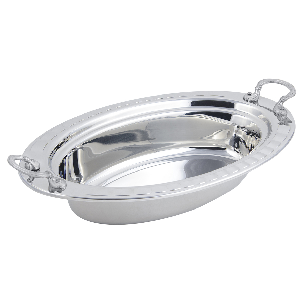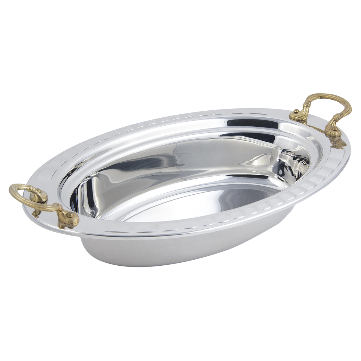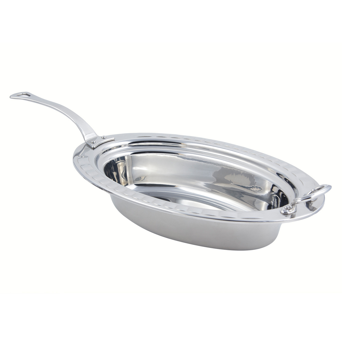 Constructed of heavy gauge, high-polished stainless steel, these pieces can travel straight from the oven to table to steam table. Customize any Hot Solutions item by choosing a stylish patterned border or decorative handle.