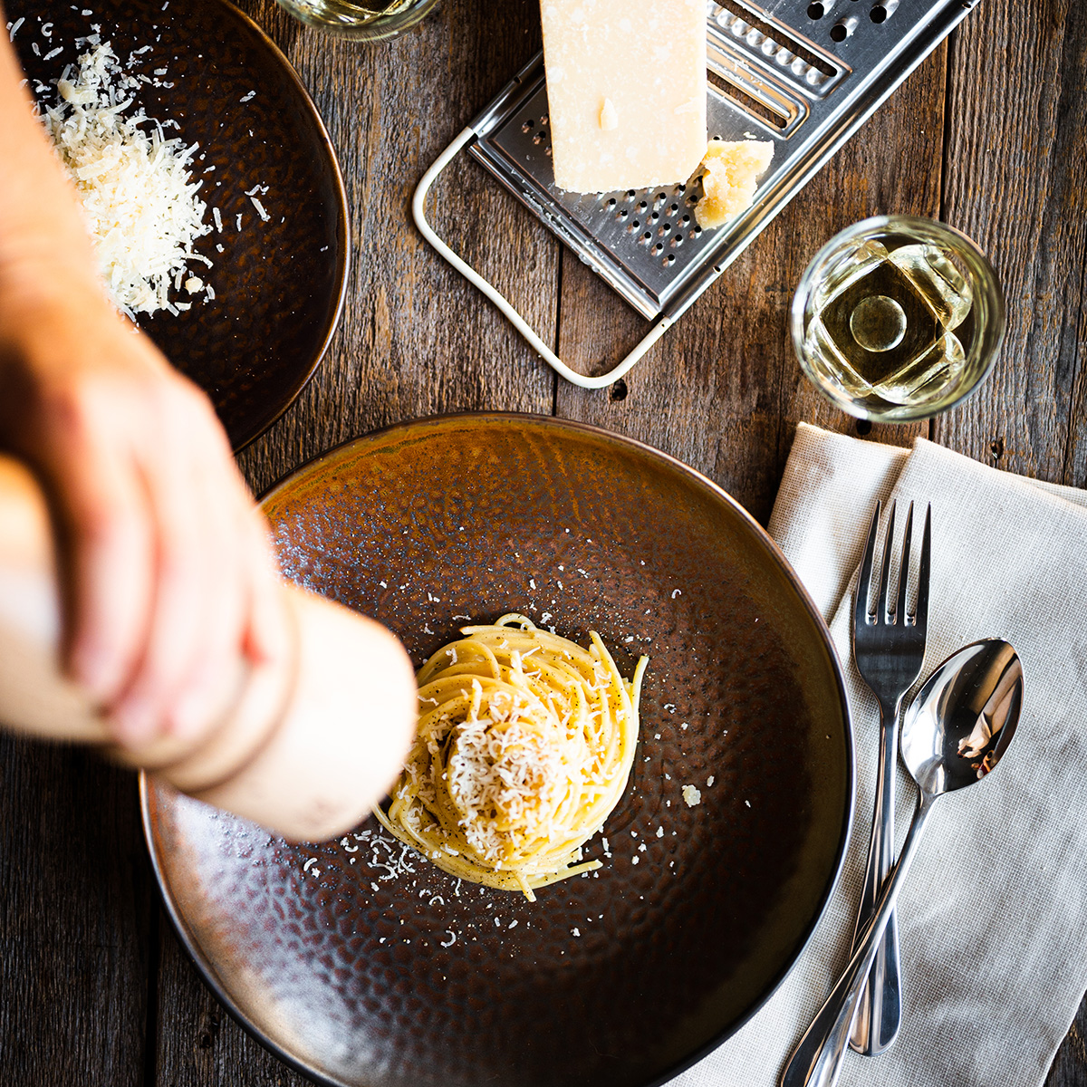 This collection of coppery hues warms any tablescape. Playful texture adds depth to your setting and showcases food. A wide collection of sizes from shared plates to family platters.